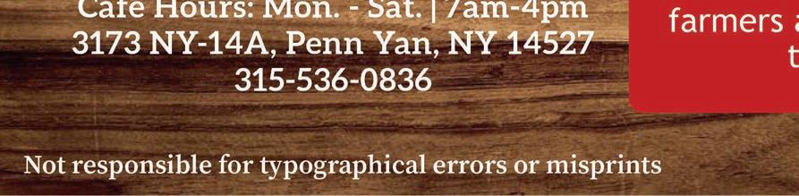SOUTHERN TIER SHOPPER TUESDAY, JULY 25, 2023 OVER 23,500+ CIRCULATION 3 Hammondsport, New York 14840 (Located between Pulteney and Hammondsport) FROM PENN YAN (15 Miles South of Village) Take NY 54A South/West to Branchport Turn Left onto West Lake Road Turn Right on Gibson Hill Road/Gallagher Road Turn Right onto Cross Street First Driveway on the Left DIRECTIONS: FROM HAMMONDSPORT (8 Miles North of Village) Take West Lake Road North Turn Left on Gibson Hill Road/Gallagher Road Turn Right onto Cross Street First Driveway on the Left SHOP SMALL BUSINESSES • SHOP STONEVIEW OPEN WEDNESDAY - SUNDAY 9:00 AM - 5:00 PM 10266 Cty. Route 76, Pulteney, NY • 607.868.3946 Wild Goose Chase ANTIQUES Our Multi-Dealer Shop Offers a General Line of Antiques in a Turn-of-the-Century Vineyard Barn on the West Side of Keuka Lake wildgoosechaseantiques.net OPEN DAILY 10:00 AM - 5:00 PM APRIL - OCTOBER 2921 Coates Rd, Penn Yan, NY Great Antique Furniture Ready For Your Home! N.Y.S. Crocks, Iron Banks, Weather Vanes, Artwork, And Much, Much More!! Best Assortment Of Quality Antiques In The Finger Lakes. CRACKED POT ANTIQUES CRACKED POT ANTIQUES 3 1 5. 4 3 9 .2 9 7 6 31 439 976 OPEN: Thursday, Friday And Saturday 10:00 AM - 4:00 PM A Decorator’s Haven www.crackedpotantiques.com LONGWELL LUMBER CO. 31 West Steuben Street, Bath, New York • (607) 776-2713 SHOP SMART, SHOP ESSENTIALS Summer Project CHECK US FIRST!! 31 West Steuben Street, Bath, New York • (607) 776-2713 Summer Project? Treated Split Rail Fence Treated 6’x8’ Dog Ear Panel Treated 4’x8’ Lattice BACK IN STOCK IN DECK STAINS - ONLY THE BEST! NEW 12”x12” Handy Pavers STARTING AT..................... $18.29 WWW.AIRVENTALUM.COM VISIT OUR SHOWROOM AT 14 MAIN STREE T, ARKPORT, NY CALL TO ARRANGE AN APPOINTMENT AT 607-295-7773 CALL TO ARRANGE AN APPOINTMENT AT 607-295-7773 SUN ROOMS • DOORS • WINDOWS • SEAMLESS GUTTERS • DECKS CULTURED STONE • PATIO COVERS • RETRACTABLE FABRIC AWNINGS ALUMINUM AWNINGS • INTERIOR REMODELING • VINYL SIDING OWNED BY TRACY AND KAREN BURDETT WE PROUDLY SERVE THE SOUTHERN TIER AND FINGER LAKES REGIONS WE PROUDLY THE SOUTHERN FINGER REGIONS WE ARE PROFESSIONAL INSTALLERS WITH “QUALITY” AND “EXPERTISE” FOR OVER 60 YEARS 35 MU LCH CHRISTY PAVING 6 0 7. 20 7. 7176 23 RACE STREET COOPERS PLAINS • NEW YORK Brown, Black, or Red per yard Natural Discount for Bulk Orders over 25 yards Garden Compost, Wood Chips, Stone, Topsoil, Driveway Sealer And Supplies Also Available MU LCH MU LCH $35 Natural $$35 $25 25 Discount for Bulk Orders over 25 yards
