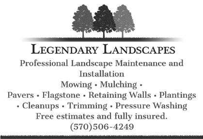 ONLINE BIDDING PROVIDED BY: 2921 Coates Rd, Penn Yan, NY Great Antique Furniture Ready For Your Home! N.Y.S. Crocks, Iron Banks, Weather Vanes, Artwork, And Much, Much More!! Best Assortment Of Quality Antiques In The Finger Lakes. CRACKED POT ANTIQUES CRACKED POT ANTIQUES 3 1 5. 4 3 9 .2 9 7 6 31 439 976 OPEN: Thursday, Friday And Saturday 10:00 AM - 4:00 PM A Decorator’s Haven www.crackedpotantiques.com Professional Landscape Maintenance and Installation Mowing • Mulching • Pavers • Flagstone • Plantings • Retaining Walls • Renovations • Cleanups • Trimming FREE ESTIMATES AND FULLY INSURED 570.506.4249 Bath, NY Dave’s Dave’s OPEN 7 DAYS A WEEK! Apples, Pumpkins, Mums, Straw, and Fall Decor Local Sweet Corn, Winter Squash. Fresh Produce Arriving Daily! Next To Emmie’s WE ACCEPT FARMERS’ CHECKS, EBT AND CREDIT CARDS 6719 Route 415 S • Bath, NY 14810 FARMERS’ EBT AND CREDIT HOUSEKEEPING & CLEANING SERVICE ANN’S “Old Fashion Cleaning, We Get In All The Corners” Ann Giardina • Call: 607-329-4906 References and Reliable! Homes, Offices, Cottages, Parties SPRING CLEANING Senior Citizen Discount Gift Certificates Available 315-536-3038 315-536-3038 JIM COVELL & SON JIM COVELL & SON TREE TRIMMING & REMOVAL TREE TRIMMING & REMOVAL CALL ANYTIME FREE ESTIMATES • FULLY INSURED 60 YEARS EXPERIENCE STUMP GRINDING • 24 HOUR EMERGENCY SERVICE CALL OR TEXT PICK UP OR DELIVERY 60 7. 76 9. 8 19 9 IN THE BATH AREA TOPSOIL F O R S AL E ALSO: STRAW, HAY & OATS TOPSOIL F O R S AL E ALSO: STRAW, HAY OATS 60 7. 76 9. 8 19 9 seneca grove rus ti cs 365 shannon corners road dundee, nY 14837 607.243.7220 red cedar log furniture loren martin 6 0 7 2 4 3 8875 1719 ROUTE 230 DUNDEE, NY 14837 COME SEE US AT THE WINDMILL! PRODUCE & GREENHOUSES CRYSTAL VALLEY CRYSTAL VALLEY PRODUCE & GREENHOUSES Mon - Fri 8AM - 7PM Sat 8AM - 6PM Closed Sunday OUR BIG RED BARN IS RESTOCKED WITH GIFTS AND GARDEN DECOR! OUR OWN HOME RAISED PORK APPLES, PUMPKINS, FALL DECOR, MUMS, CANNING TOMATOES, HOME GROWN SWEET CORN, CANTALOPES AND WATERMELONS! 315. 5 3 6. 5 84 8 Garage Doors • Sales And Service Residential And Commercial 2107 SECOND MILO RD • PENN YAN, NY 2107 SECOND MILO RD • PENN YAN, NY • 315. 5 3 6. 5 84 8 PHONE FAX Y r C plete ELECTRICAL, PLUMBING & HEATING SUPPLY STORE MONDAY - FRIDAY, 7:00 AM - 5:00 PM CLOSED SATURDAY L.M. SUPPLY 585.554.4050 • WE DELIVER 1505 INGRAM RD. PENN YAN, NY 14527 Double M Fence 2461 Knapp Road, Dundee, NY 14837 Jonathan 315.96 0.19 76 We Do Residential Fences! Chain Link Fence • Privacy Fence Split Rail Fence • Vinyl Fence Agricultural Fence 0.1976 47 W. Steuben St., Bath, NY 607-776-5757 SERVING THE BATH AREA SINCE 1997 PLUMBING HEATING AC ELECTRIC WE SERVICE GAS & FUEL OIL FURNACES & BOILERS Call for a FREE Heating Estimate!
