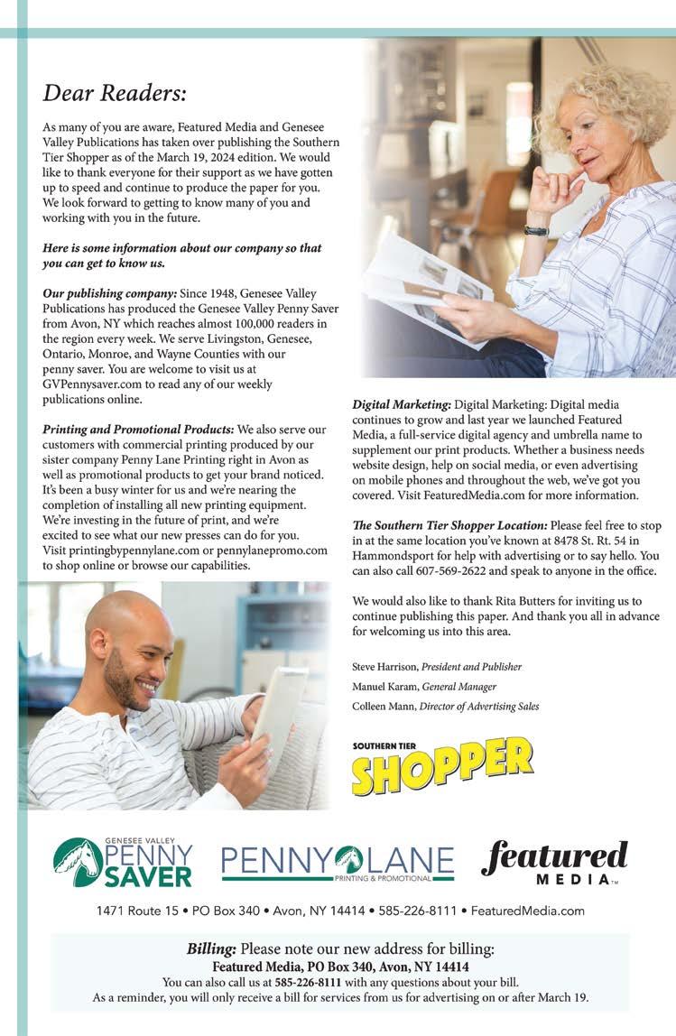 4 SOUTHERN TIER SHOPPER TUESDAY, APRIL 16, 2024 OVER 25,000+ CIRCULATION