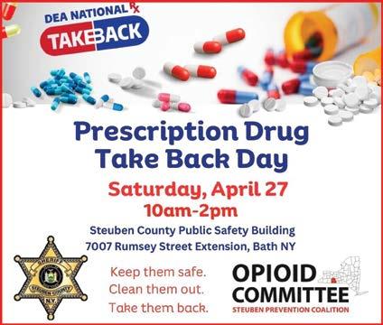 SOUTHERN TIER SHOPPER TUESDAY, APRIL 16, 2024 OVER 25,000+ CIRCULATION 3 Hammondsport, New York 14840 (Located between Pulteney and Hammondsport) FROM PENN YAN (15 Miles South of Village) Take NY 54A South/West to Branchport Turn Left onto West Lake Road Turn Right on Gibson Hill Road/Gallagher Road Turn Right onto Cross Street First Driveway on the Left DIRECTIONS: FROM HAMMONDSPORT (8 Miles North of Village) Take West Lake Road North Turn Left on Gibson Hill Road/Gallagher Road Turn Right onto Cross Street First Driveway on the Left SHOP SMALL BUSINESSES • SHOP STONEVIEW OPEN SATURDAY & SUNDAY 9:00 AM - 5:00 PM We have a variety of NEW FURNITURE, candles, artisan made jewelry, antiques, wall decor, lamps, and garden accessories. NEW TREASURES EVERY WEEK! 10266 Cty. Route 76, Pulteney, NY • 607.868.3946 Wild Goose Chase ANTIQUES Our Multi-Dealer Shop Offers a General Line of Antiques in a Turn-of-the-Century Vineyard Barn on the West Side of Keuka Lake wildgoosechaseantiques.net NOW OPEN FOR SEASON OPEN DAILY 10:00 AM - 5:00 PM APRIL - OCTOBER ro b o rds Hau l i n g phone: 607.329.8777 STONE • GRAVEL • TOP SOIL • MULCH • SAND p h o n e: 607.329. 8 7 7 7 AT THE TOWN HIGHWAY GARAGE 7675 WHITEHEAD HILL RD • BRADFORD, NY SATURDAY, MAY 4TH 8:30 - 11:30 LONGWELL LUMBER CO. 31 West Steuben Street, Bath, NY • (607) 776-2713 DELIVERY AVAILABLE • FREE ESTIMATES • FREE PARKING Do it once. Do it right. Do it DuraLife. 5% OFF DURALIFE DECKING NOW THRU APRIL 30TH SHOP SMART, SHOP ESSENTIALS SHOP SMART, SHOP ESSENTIALS SHOP SMART, SHOP ESSENTIALS davidsonsfurniture.net 161 Main Street • Hornell • 607.324.6631 MONDAY - FRIDAY 9:00AM - 5:30PM • THURSDAY 9:00AM - 7:00PM SATURDAY 9:00AM - 5:00PM • SUNDAY 12:00PM - 4:00PM No Interest Financing With Approved Credit O% 12 MONTH FINANCING Davidson’s Davidson’s Furniture • Flooring • Window Treatments Since 1876 SALE Queen Mattress..........$399 Twin Mattress.............$299 Full Mattress..............$349 King Mattress.............$599 Davidson’s Davidson’s Since 1876 OPEN SUNDAYS 12-4PM SERTA PILLOW TOP MATTRESS Recliners From $399 00 Gift Certi cates - Any Amount! 148 Anniversary Sale! 148 Anniversary Sale! 187 6 202 4 ALL FAMOUS BRANDS ON SALE FREE $50-$ 100 Gas And Groceries Card With The Purchase Of A SERTA Perfect Sleeper Or I-Comfort Mattress! Sofas From ONE YEAR! ONE YEAR! ANNUAL OPEN HOUSE 7522 SENECA ROAD N HORNELL , NEW YORK 7522 SENECA ROAD N HORNELL , NEW YORK 9:00 AM - 5:00 PM 9:00 AM - 12:00 PM THERE WILL BE GIVEAWAYS, DOOR PRIZES, FOOD, 10% PARTS DISCOUNTS,BEVERAGES, AND SO MUCH MORE! Check Out Our Extensive Selection Of Agricultural, Lawn And Garden Equipment As We Celebrate Our 79th Year In Business. You Are Invited To Charles F. Oliver & Son’s ANNUAL OPEN HOUSE Friday, April 19th Saturday, April 20th You Are Invited To Charles F. Oliver & Son’s Friday, April phone: 60 7.66 1 4 346 oliver@chasoliverequip.com 346 F REE RABIES CLINIC F • Cats, Dogs And Domesticated Ferrets • Dogs Must Be On A Leash Cats And Ferrets Must Be In A Carrier Bring Proof Of Any Prior Rabies Shot To Help Cover Town And County Costs, A $5.00 Donation Per Pet Is Requested But Not Required. THE TOWN OF URBANA At The Town Of Urbana Highway Garage 7968 Back Valley Rd, Hammondsport, NY IN COOPERATION WITH STEUBEN COUNTY PUBLIC HEALTH At The Urbana Highway Rd, Hammondsport, NY THURSDAY, APRIL 25 • 6PM-7PM THURSDAY, APRIL 25 • 6PM-7PM When You Arrive At The Highway Garage, Please Remain In Your Vehicle. Someone Will Come To Your Car To Give You Paperwork to fill out. Please Do Not Get Out Of Your Vehicle Until You Are Directed To Go Into The Building. Hippy Shop Hip Hop We’re Back, They Say SAVE THE DATE!!: Avoca Village Town yard sales. May 10th & 11th. ( 4/16, 5/7) FARM FRESH BEEF & PORK: No added hormones, no antibiotics, no GMO. Half, whole or quarters processed to your standards. Phone 315536-6646. (2/6/25) GOODIE’S FLEA MARKET AT THE OLD MULLER’S AUCTION BARN IN BATH: Open Mon--Sat, 9am-4pm. Plenty of good prices and lots of new and used things. We also have trains for sale! Too much to list. Look for flags. Phone 607- 644-3566. (5/7)