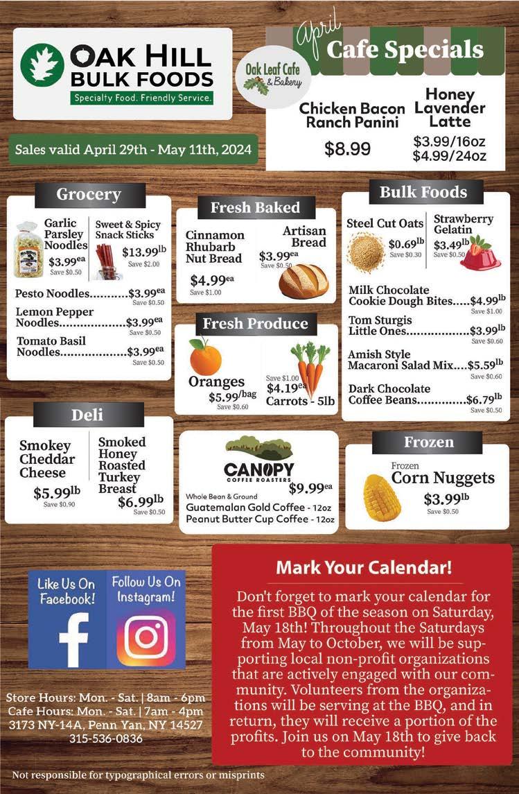 CHECK OUT OUR MEAL DEALS! ONLY $11.99 EACH!!: Available Weds, Thurs, & Fridays, 12 noon until 7pm. Now through May 10th. Choose One : 1/2 Chicken BBQ; 1/2 Rack Baby Back Ribs. Meals include: choice of salt potatoes or Mac and Cheese; baked Beans or Garlic Butter Green Beans; Coleslaw or Tossed Salad and roll; banana split fluff or cheesecake swirl brownie. AND DON’T FORGET OUR FAMOUS FRIDAY FISH FRY. Choice from Beer Battered or Broiled Haddock. Meals include choice of Potato or Mac & Cheese, Coleslaw or Tossed Salad or Vegetable & Roll. $11.99. Eat in or take out, 607566-4006. Open Monday & Tuesday, 7am - 1pm; Wednesday, Thursday & Friday, 7am - 7pm; Saturday 7am - 1pm. AVOCA’S BRUNCH & MUNCH CAFE, 14 North Main Street, Avoca, NY. (5/7)