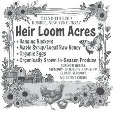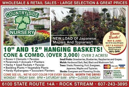 HILLSIDE GREENHOUSE: Flower and vegetable plants, herbs, baskets, and more. HILLSIDE GREENHOUSE, 4418 Lakemont Himrod Road, Dundee, NY. 607-243-8097. (5/28)