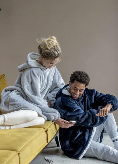 Het hoodie deken is gemaakt van 100% GRS-gecertificeerd polyester flanel aan de buitenkant en gevoerd met off-white sherpa van 100% GRS gerecycled polyester aan de binnenkant. Het oversized ontwerp biedt ultiem comfort, ideaal voor ontspannen op de bank of kamperen onder de sterren. Met een stijlvolle capuchon en een handige voorzak combineert deze deken warmte met een vleugje flair. Sherpa van 100% GRS-gecertificeerd gerecycled polyester, 190 g/m².