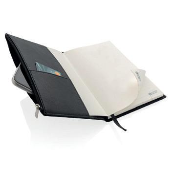 Luxe A5 PU-notitieboek met handig voorvak met ritsluiting.