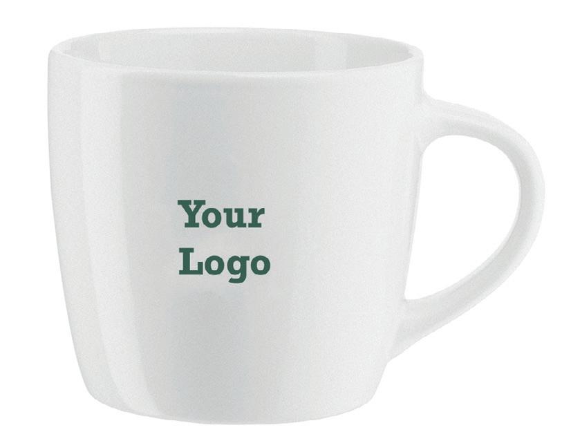 Keramische kwaliteitsmok met royaal oor. In geheel wit óf met gekleurde buitenzijde. Inhoud 340 ml.