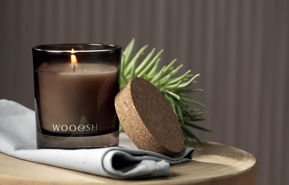 Decoratieve Wooosh geurkaars gegoten in een mooi gepolijst glas met een kurken deksel. Deze kaars zorgt direct voor een aangename geur en creëert een rustige sfeer. De geurkaars is gemaakt van was, waarvan 5% eco-vriendelijke sojawas, met een toevoeging van 5% geurolie. Zodra je de kaars aansteekt ervaar je harmonie en natuur. Deze kruidige geursensatie draagt bij aan rust en ontspanning tijdens het uitoefenen van yoga en meditatie, in een wellness ruimte of in je badkamer en is tegelijkertijd verfrissend. Deze luxe geurkaars past in elke omgeving en heeft maar liefst 32 branduren. Als je de kaars voor de eerste keer aansteekt, laat de bovenste waslaag dan helemaal smelten. Dit zorgt voor een gelijkmatige verbranding en een ultieme geurbeleving.