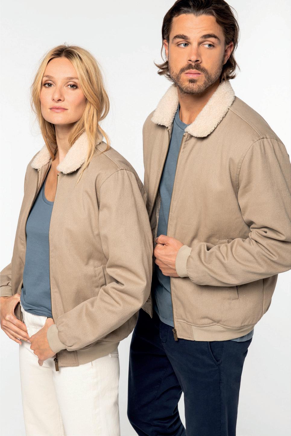 Rits van gerecycled metaal. Buitenkant van de kraag en voering van de body in gerecycleerd Sherpa-polyester.