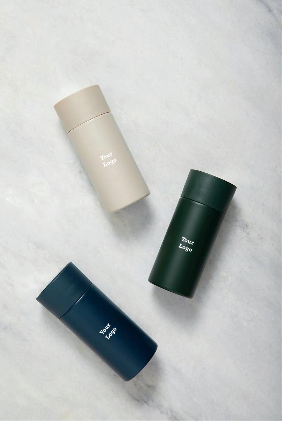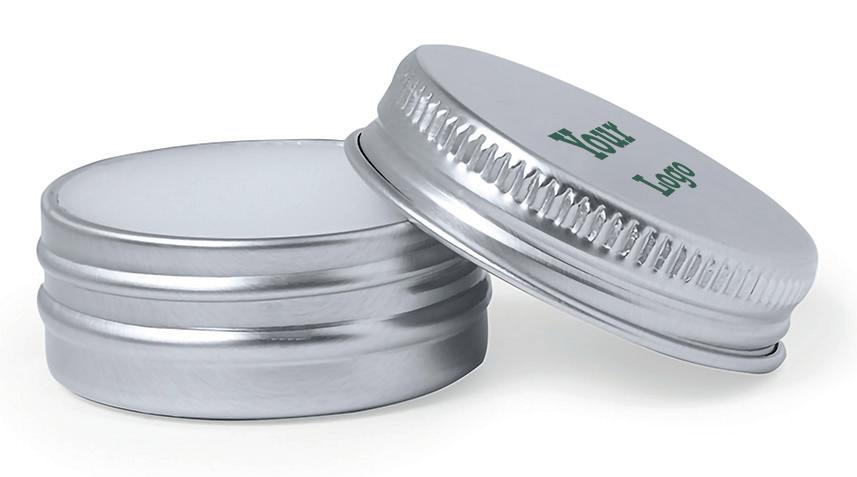 In een aluminium container met schroefdop en metallic finish.