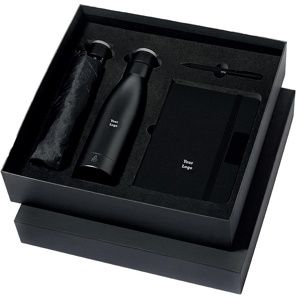 Set gepresenteerd in een individuele matte afwerking, met een gestanste binnenzijde voor elk van de elementen van de set.