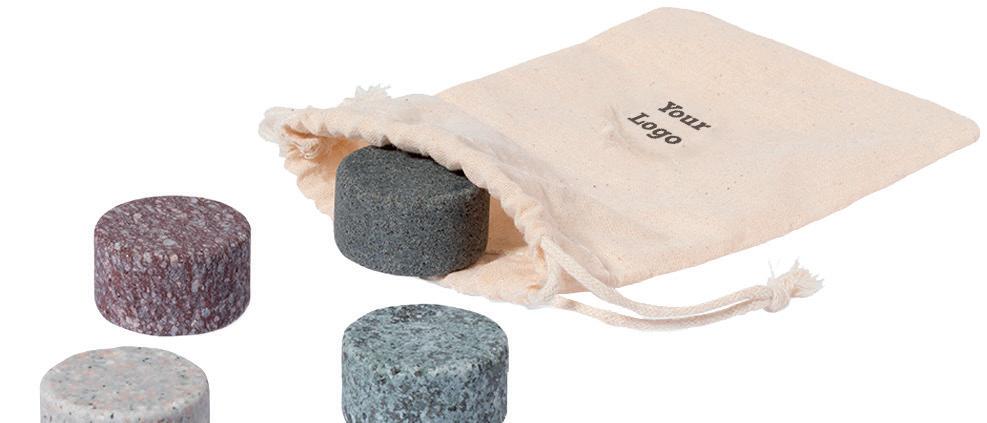 Set van 4 herbruikbare ijsblokjes.Gemaakt van graniet, houdt de drank koud zonder de eigenschappen te veranderen door de inhoud niet in water te verdunnen, en behoudt zijn oorspronkelijke smaak. Verpakt in een katoenen etui met trekkoordsluiting.