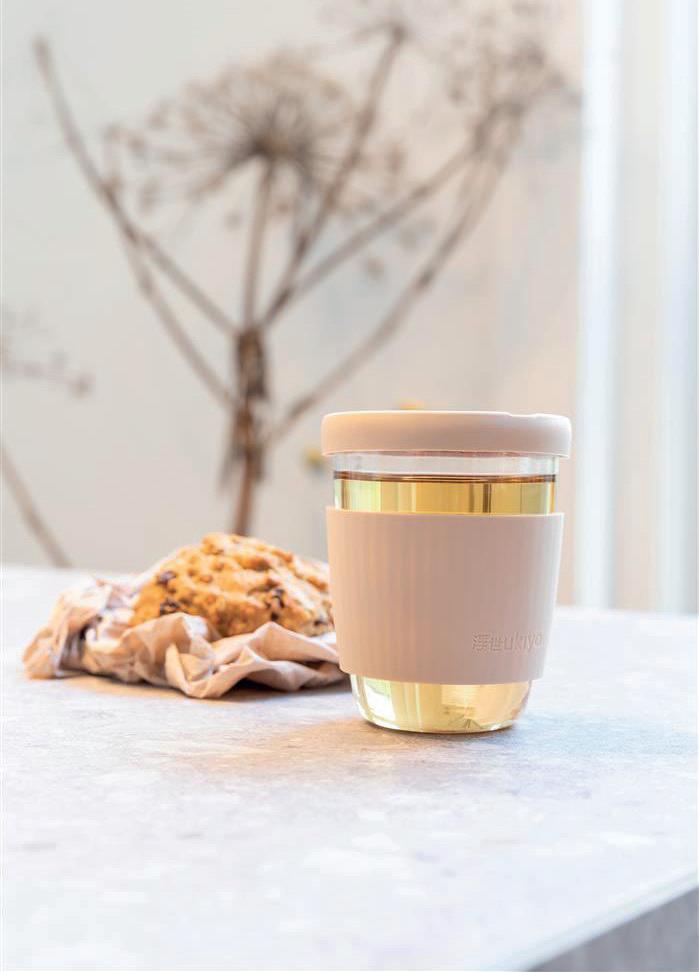 Geniet van je koffie op het werk of thuis in dit Ukiyo borosilicaatglas met siliconen deksel en sleeve. De beker heeft een fijne grip en een slanke vorm. Een kleine opening in het deksel laat stoom ontsnappen om drukopbouw te voorkomen. BPA-vrij.
