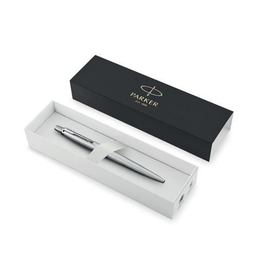 Parker binnencartridge en blauwe inkt. Gepresenteerd in een individuele zwarte etui met Parker-logo.