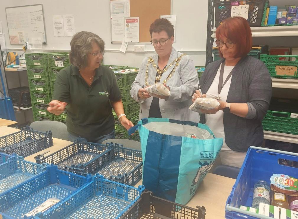 The Town Mayor Cllr Liz Jones and Deputy Town Mayor Lisa Bird during a recent visit to the Dunstable Foodbank.