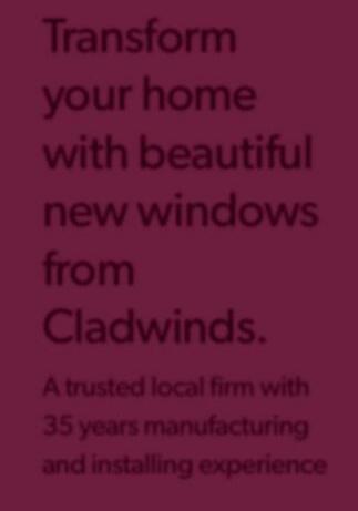 Conservatories, Windows, Doors, Conservatory roof conversions, Roofline & Aluminium seamless guttering. Visit us at: Leighton Buzzard Garden Centre, Leighton Road, Leighton Buzzard, Beds LU7 9NX or visit our Factory Showroom: Unit 17, Triumph Way, Woburn Rd Ind Est, Kempston, Beds MK42 7QB Contact Peter Pascan Tel: 01525 405330 ppascan@btinternet.com www.cladwinds.com Transform your home with beautiful new windows from Cladwinds. A trusted local firm with 35 years manufacturing and installing experience Est. since 1985 Insurance backed 10 year guarantee