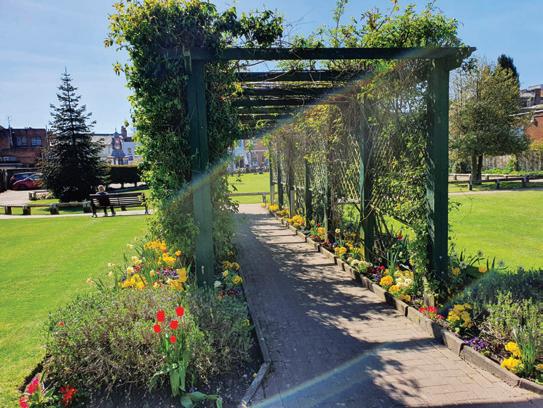 A wooden pergola currently stands in the centre of Priory Gardens in Dunstable between the Priory Church of St Peter and Priory House.