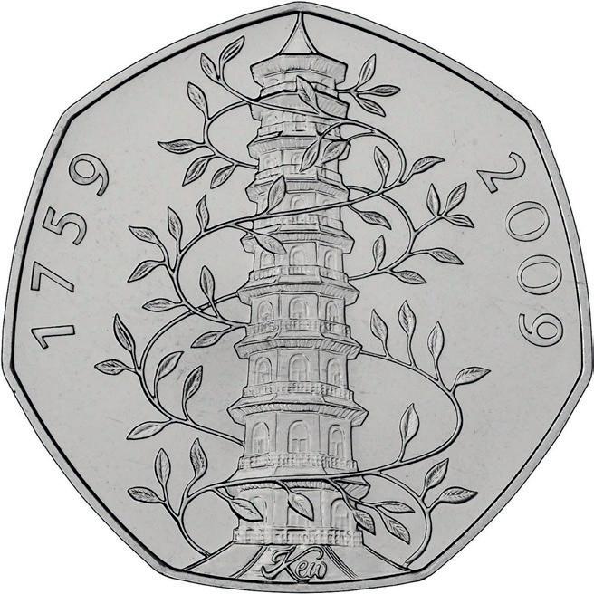 It features the iconic Chinese Pagoda of Kew Gardens, and its distinctiveness and limited release make it one of the most sought-after coins, fetching up to £245… that’s almost 500 times face value!