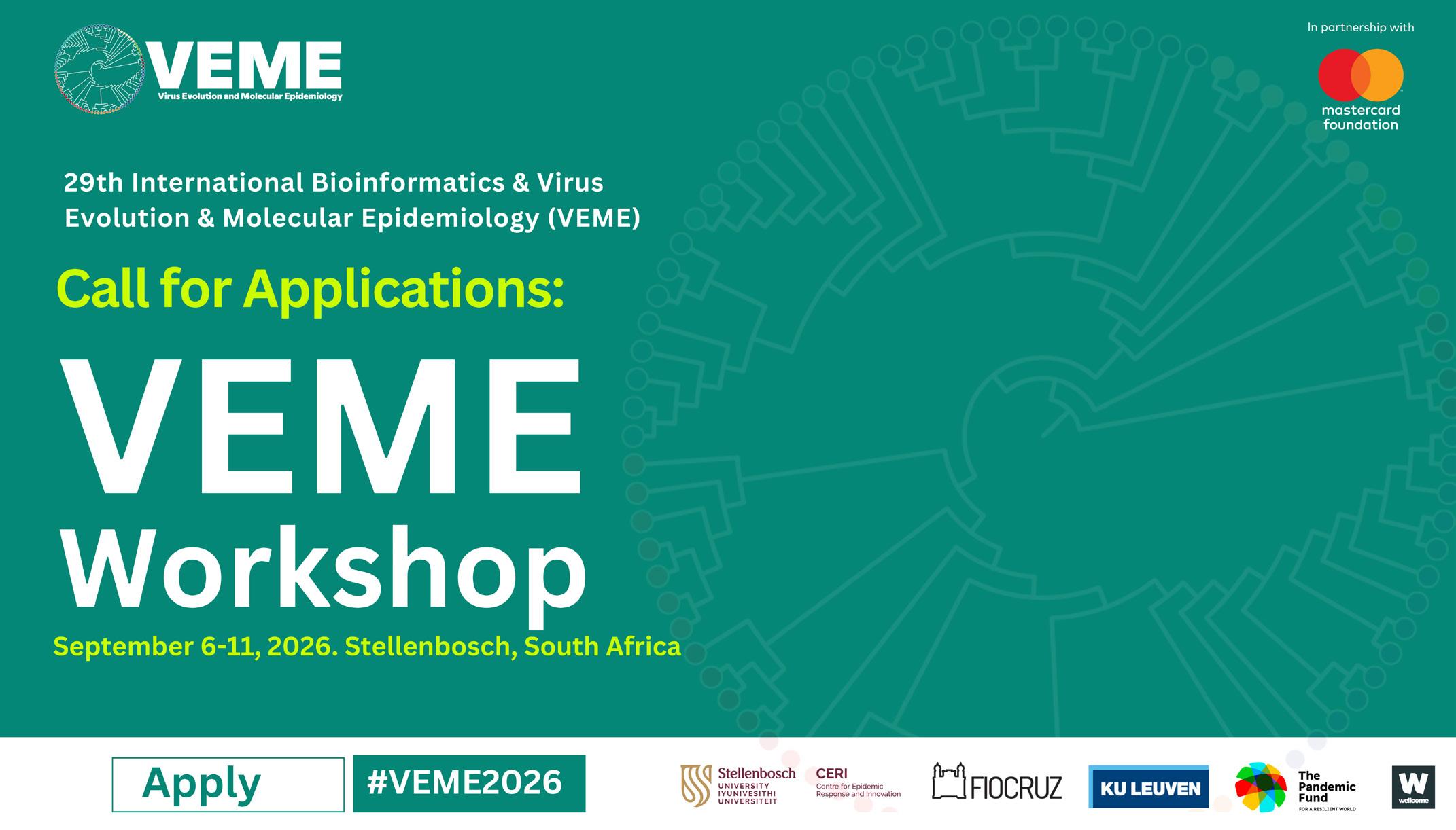Are you a scientist working in virus evolution, bioinformatics, genomic surveillance, or related computational fields? Applications are now open for the Virus Evolution & Molecular Epidemiology (VEME) 2026 workshop — a leading training programme at the forefront of bioinformatics and evolutionary analysis.