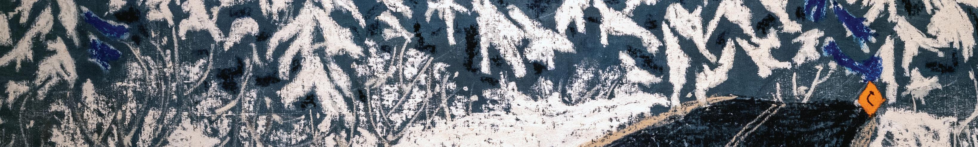 bottom image: Gennie DeWeese, Snow Scene, 1998, Oil stick on canvas, 32 x 70 inches, Gift of Carla Phelps Phelps O’Rorke in memory of James F. O’Rorke, Jr.