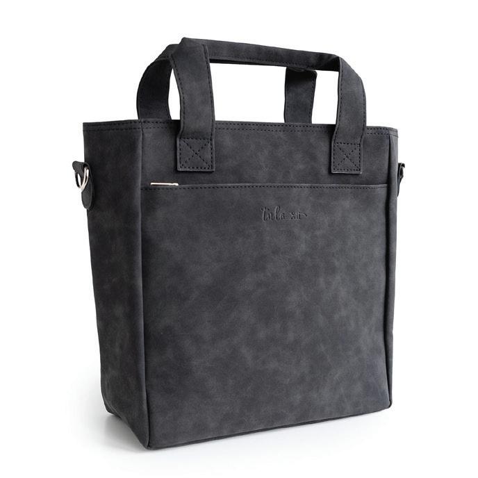 TOTE FEATURES: Soft pebbled synthetic leather | Stitched | 2 short handles with a rolled top |Front zippered outer pocket | Interior is a light canvas Medium: one main body with a zip close Large Tote: 2 inner zip pockets (inner zip pockets are not attached to the bottom of the tote) | Multiple stitched pockets within the inner zip pockets | Main body snaps closed