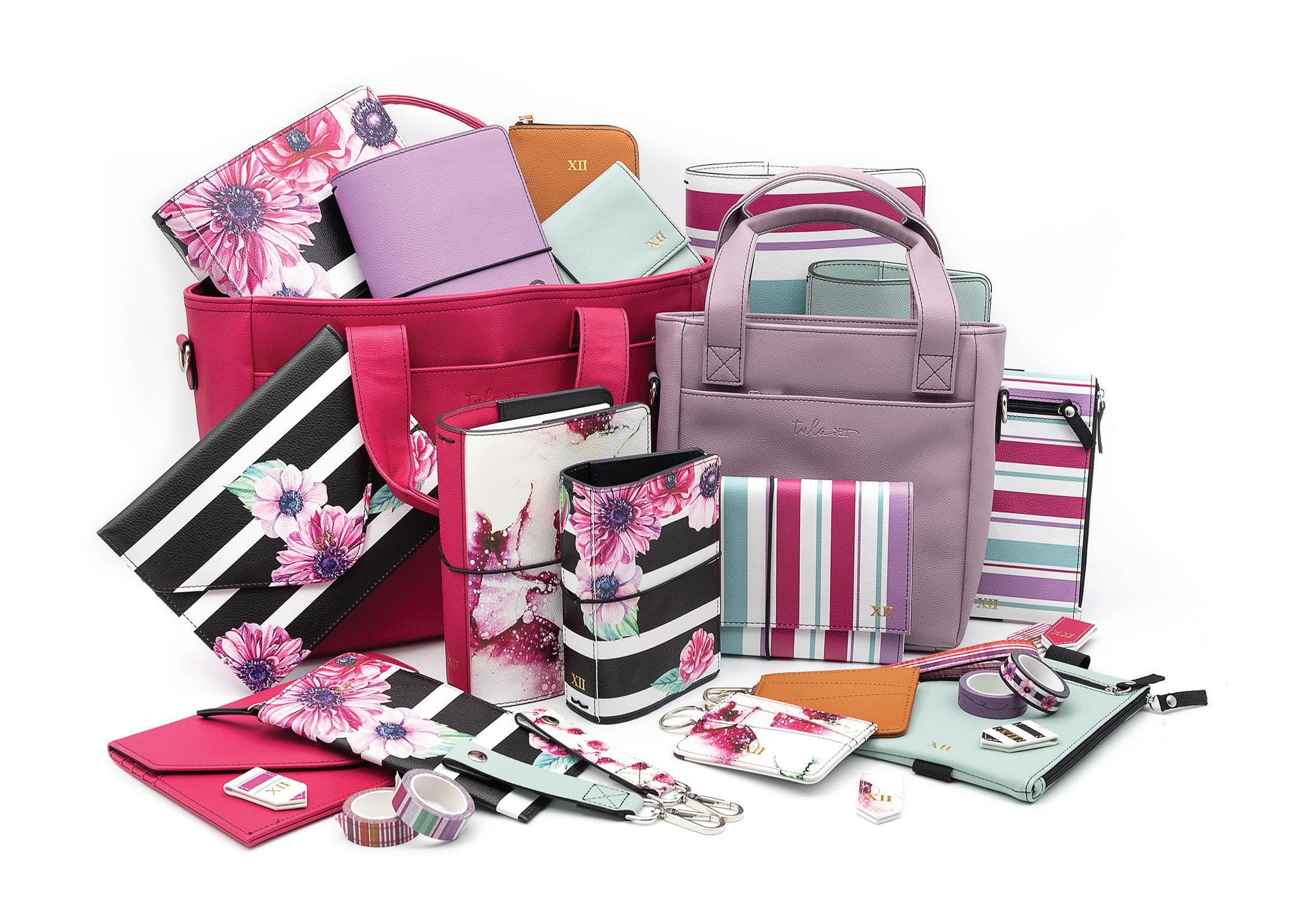 | Multiple stitched pockets within the inner zip pockets | Main body snaps closed Organize In Style Carry Your Planner in Style TOTE STRAP | $15.99 A October Dew, LS-022 | B Raspberry Sherbet, LS-023 C Color Me Plaid, LS-021 | D Aster, LS-020 E Tawny, LS-025 | F Sassy Stripe, LS-024 ASTER MINI TOTE Y-002 | $42.99 A CB D E F