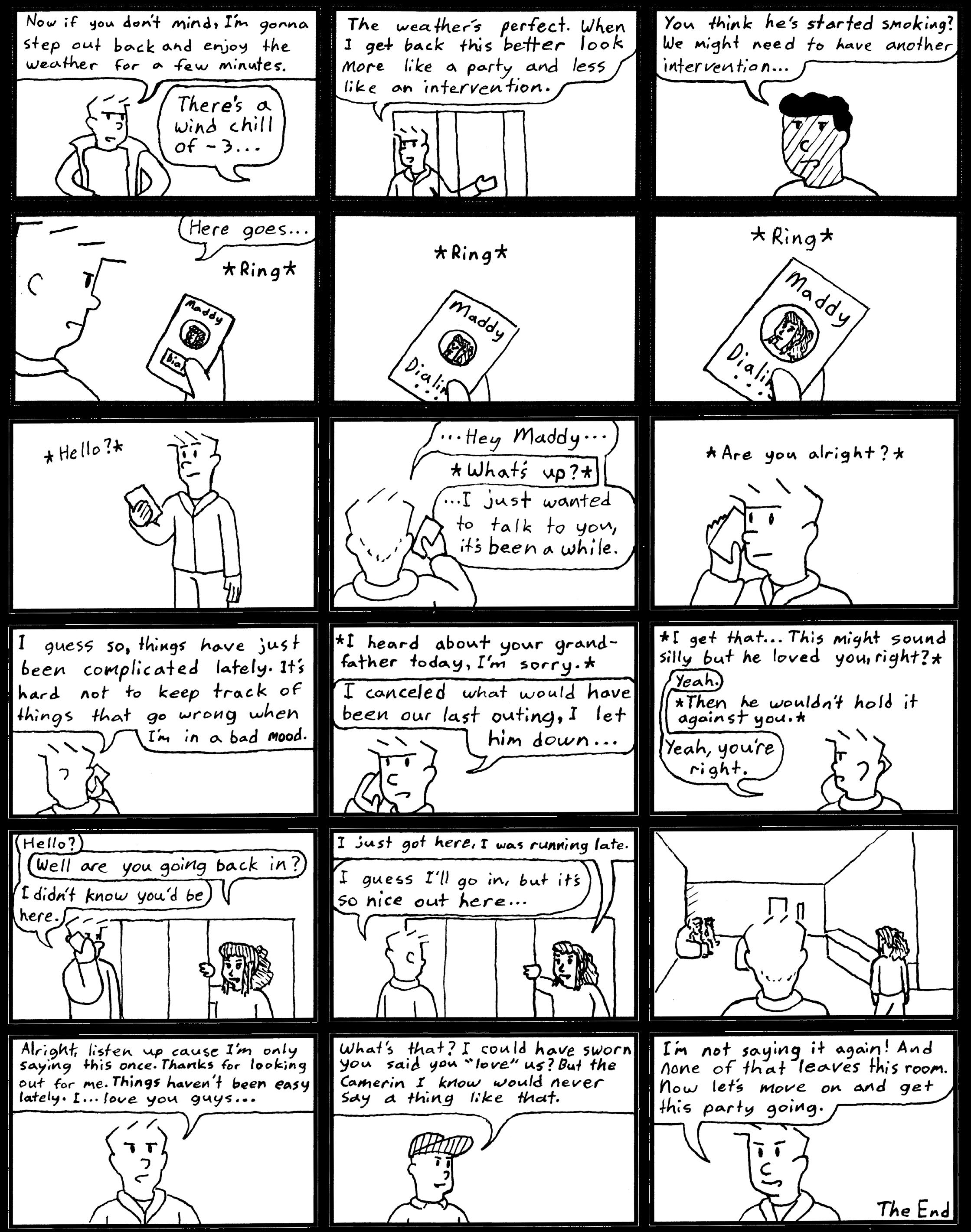 The seasonal theming of the story isn’t really important to the story itself, well it is and it isn’t. I think the story holds up outside of christmastime. I think the themes and continuity are more important than the timing. As usual with my longer strips, I feel like it doesn’t have enough jokes. The story becomes the focus with a strip like this. I never know quite how to feel about my longer storylines as I feel the main purpose of a comic is to be funny. I’m also not especially confident in my ability to create a good story. In fairness I’m not so confident in my ability to write jokes either. At least the drawings are competent. Since I’m so unsure how to feel about it, I guess that leaves readers to determine the merit or lack thereof in what I’ve created. So here you go, Christmas in May!