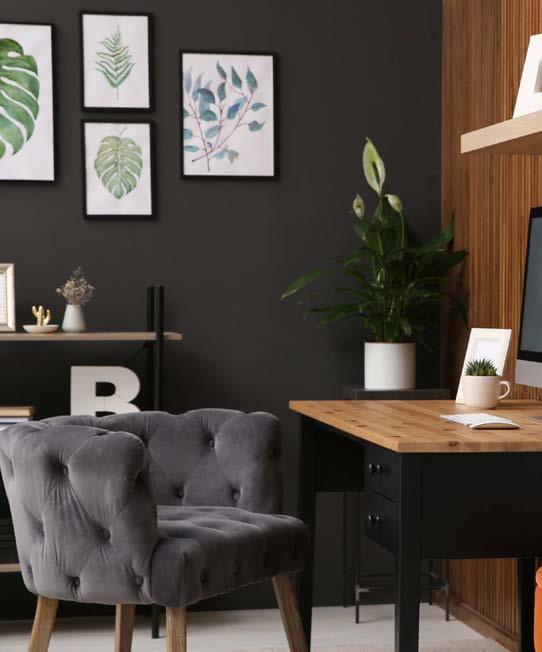 With so many people still working at home, a designated office is often a necessity and needs to be incorporated into the design of your home. First of all, it should be comfortable and functional. It is desirable to have natural light and natural materials wherever possible. Try colors that are inspired by nature for a calming environment. For a more dramatic approach, an interesting background wall color can be useful for