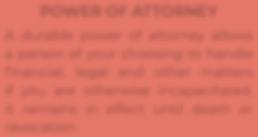 A durable power of attorney allows a person of your choosing to handle financial, legal and other matters if you are otherwise incapacitated. It remains in effect until death or revocation.