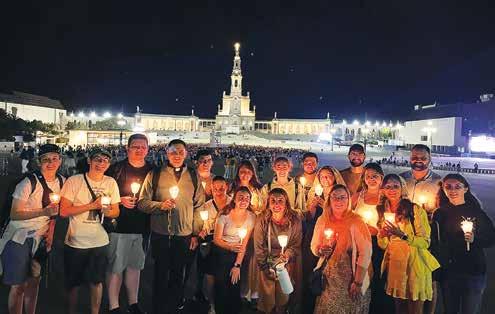 Some of the 24 diocesan pilgrims who attended World Youth Day in Lisbon, Portugal, attend a candle-light vigil in Our Lady of Fatima.