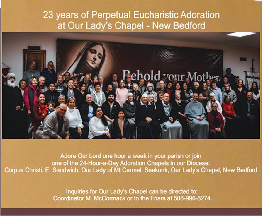 Jane Elizabeth Bellavance, St. Gabriel the Archangel Parish, New Bedford; Maria DaCruz, Our Lady of the Assumption Parish, New Bedford; Carol Eccleston, St. Francis Xavier Parish, Acushnet; Lilia Fagundes, St. Mary Parish, Dartmouth; Olga Maria Hernandez-Ortiz, St. Anthony of Padua Parish, New Bedford; Antonio Linhares, Our Lady of Mount Carmel Parish, New Bedford; Sharon Rose McGraw, St. Mary Parish, Fairhaven; Mary Peabody, St. Patrick Parish, Wareham; Madeline C. Perry, St. Lawrence Martyr Parish, New Bedford; Robert E. Santos, St. Julie Billiart Parish, Dartmouth; Anne Silveira, St. Joseph Parish, Fairhaven; Alfred Thomas Sylvia, Our Lady of Guadalupe at St. James Parish, New Bedford; Janice Tinkham, St. John Neumann Parish, East Freetown; and Gordon W. Vieira, Holy Name of the Sacred Heart Parish, New Bedford.