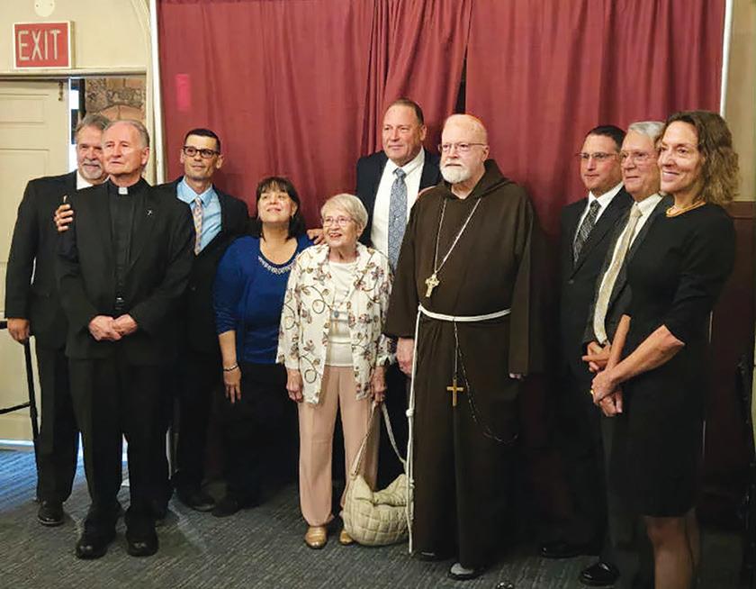 Before the dinner, he met with the Board of Directors and Chaplain of the Preservation Society and thanked them for their efforts in preserving the Shrine. Pictured is Cardinal O’Malley (middle) surrounded by members of the board of directors.