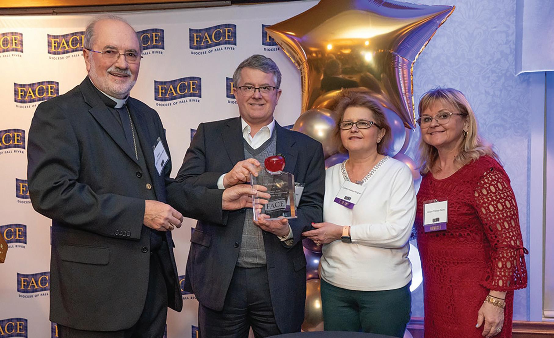 Accepting the award were Albert Makkay, Jr., a FACE Board Member, along with his sisters Allison Makkay Davis and Colleen Makkay Mulgrew (pictured with Bishop da Cunha). Their mother, Maureen Makkay, was unable to attend and was fondly missed.