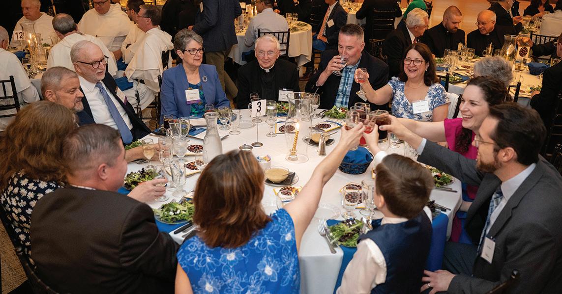 The event was filled with celebration, music, and community spirit. The evening began with lively jazz performed by Vatican III, a group that includes Fathers Matt Gill, Matt Laird, Larry Valliere, Bryan Bangs, and Patrick Fiorillo. After the blessing by Father David Frederici, V.G., who is the Cathedral’s Rector, dinner was served.