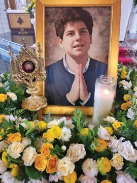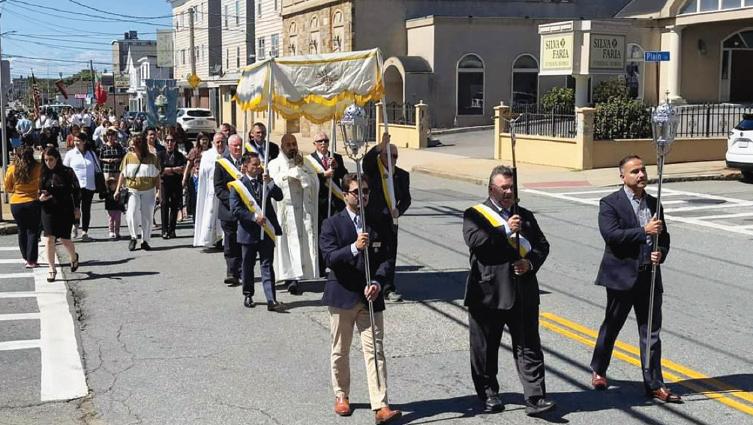 On Sunday September 8, the parish communities of Saint Anthony of Padua Roman Catholic Parish and Saint Anthony of the Desert Maronite Rite Catholic Church gathered for a Procession accompanied by a First Class Relic of Blessed Carlo Acutis. The caravan traveled east up Bedford Street to Savoir St. to the outdoor Shrine on the property of St. Anthony of the Desert Church, where Benediction of the Blessed Sacrament took place according to the Maronite rite.