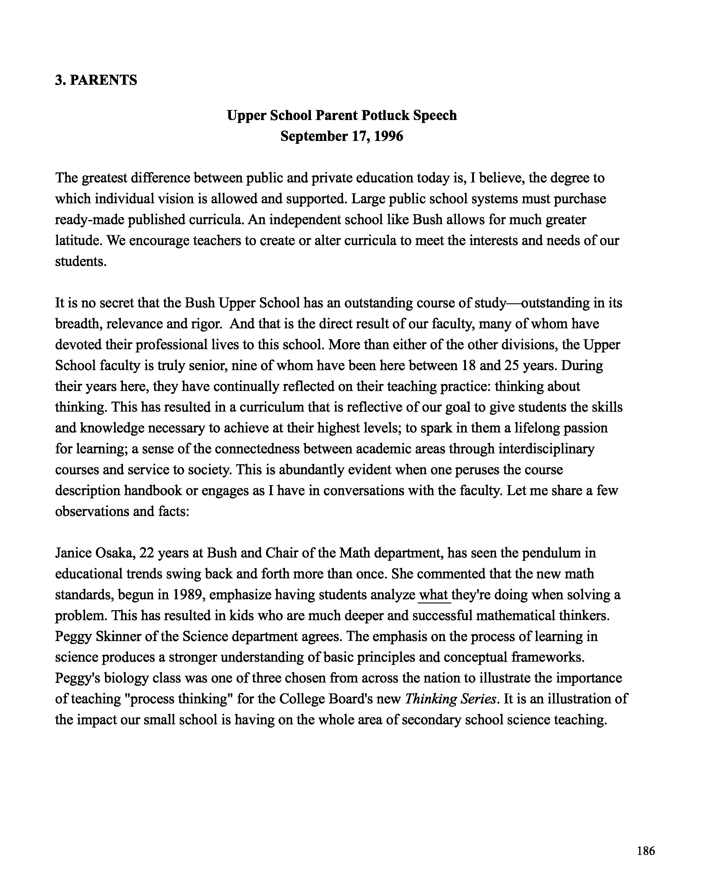 For that reason I have included documents-lectures, syllabi, meeting minutes, curriculum outlines and even some parts of the 1992-93 PNAIS evaluation-because I believe they represent groundbreaking ideas that should be preserved for historians of a future time. Although these materials may occasionally inhibit the flow of the narrative, I want to ensure that they are not lost.