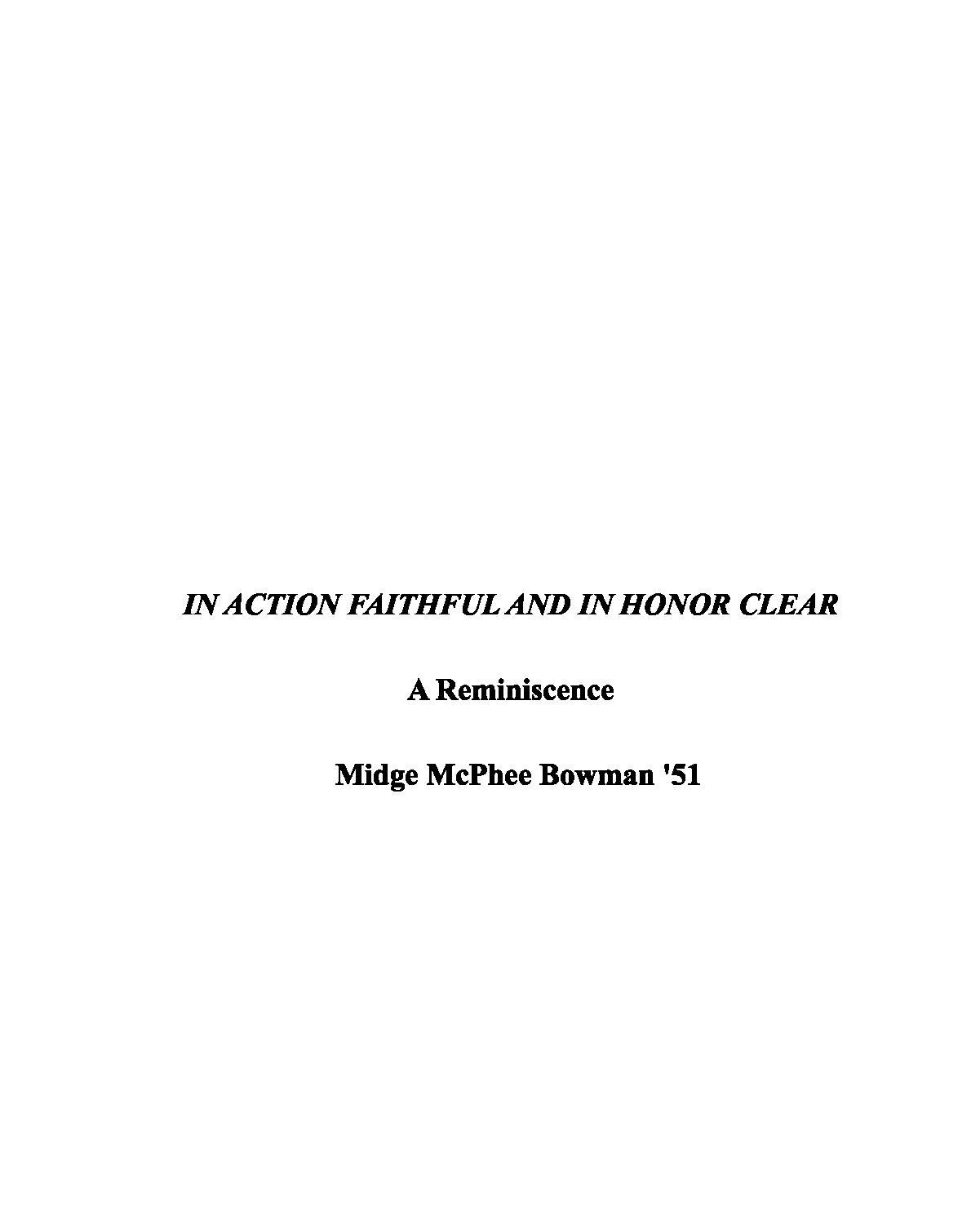 IN ACTION FAITHFUL AND IN HONOR CLEAR