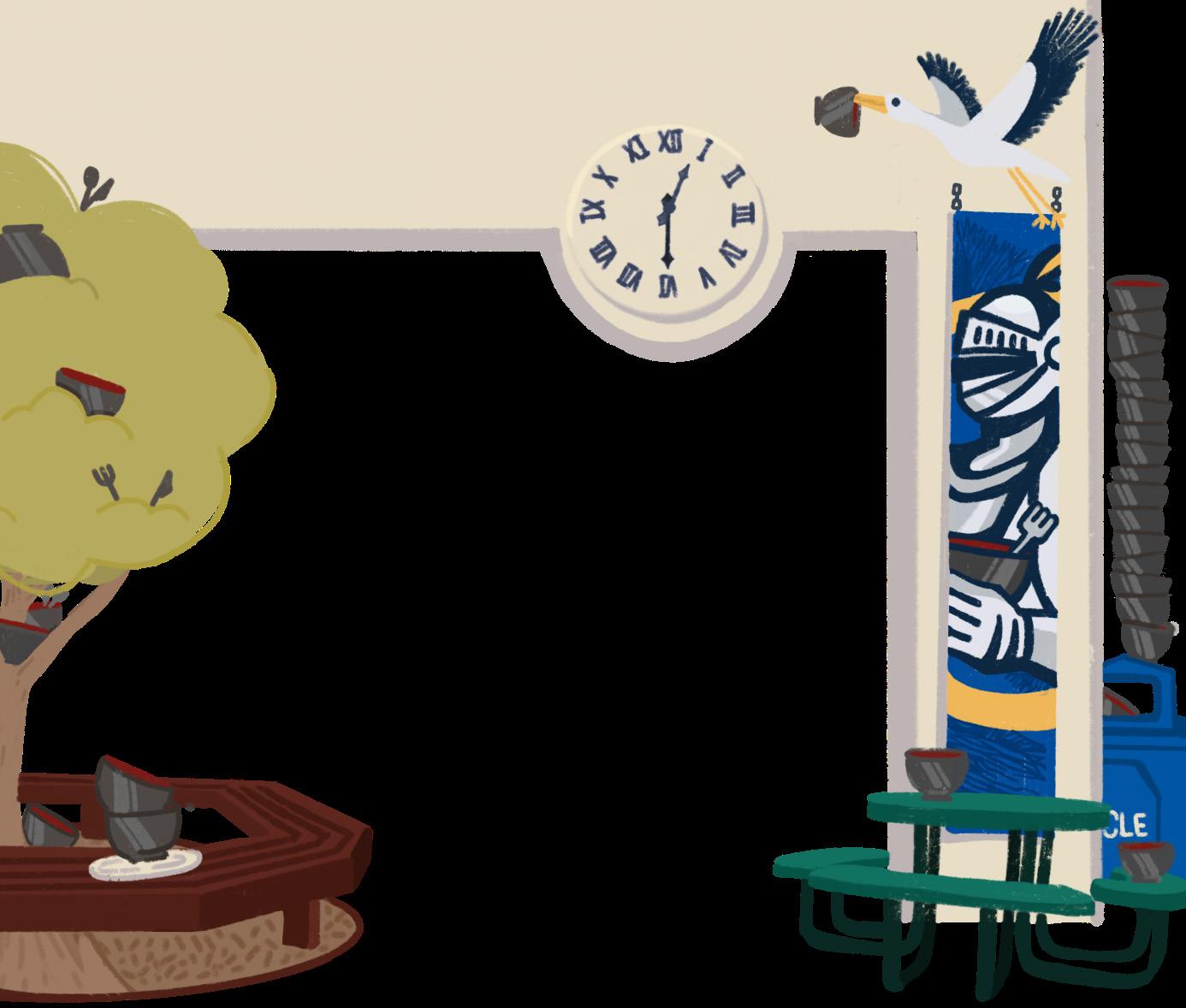 Students’ tendency to lose their reusable dishes has affected Menlo Dining’s sustainability efforts; at one point, the dining services department tested removing disposable cups as an option, but the cafeteria ended up losing more of the reusable cups and decided the strategy was not effective. “It’s gotten a little worse after COVID because everyone was so used to using disposable everything, [...] and [students] ended up getting lazier to bring back the non-reusable stuff,” Hoang said.
