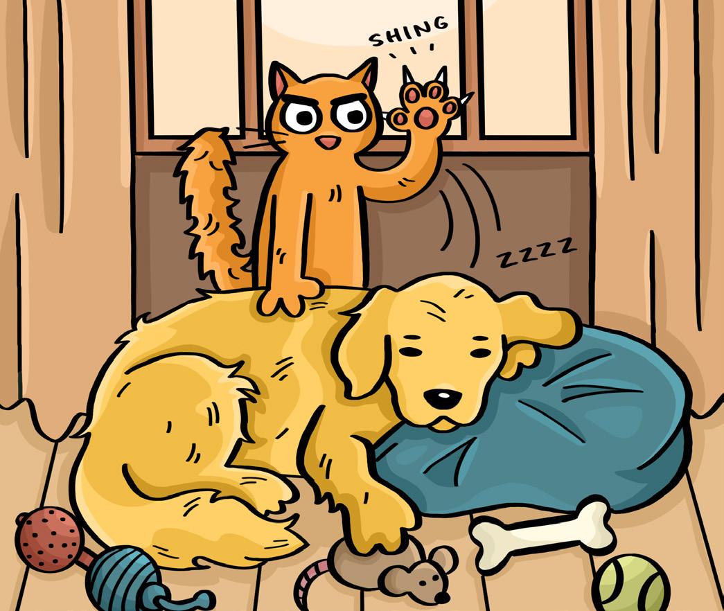 In the original AI art, there is no story to the image. AI is able to make pretty artwork, but it lacks the creativity to come up with backstory and plot for an image. To add some depth to my piece, I decided to give the cat motive for its attack on the dog with the mouse toy. In the end, I believe that human creativity will always outshine the technical skills of AI.