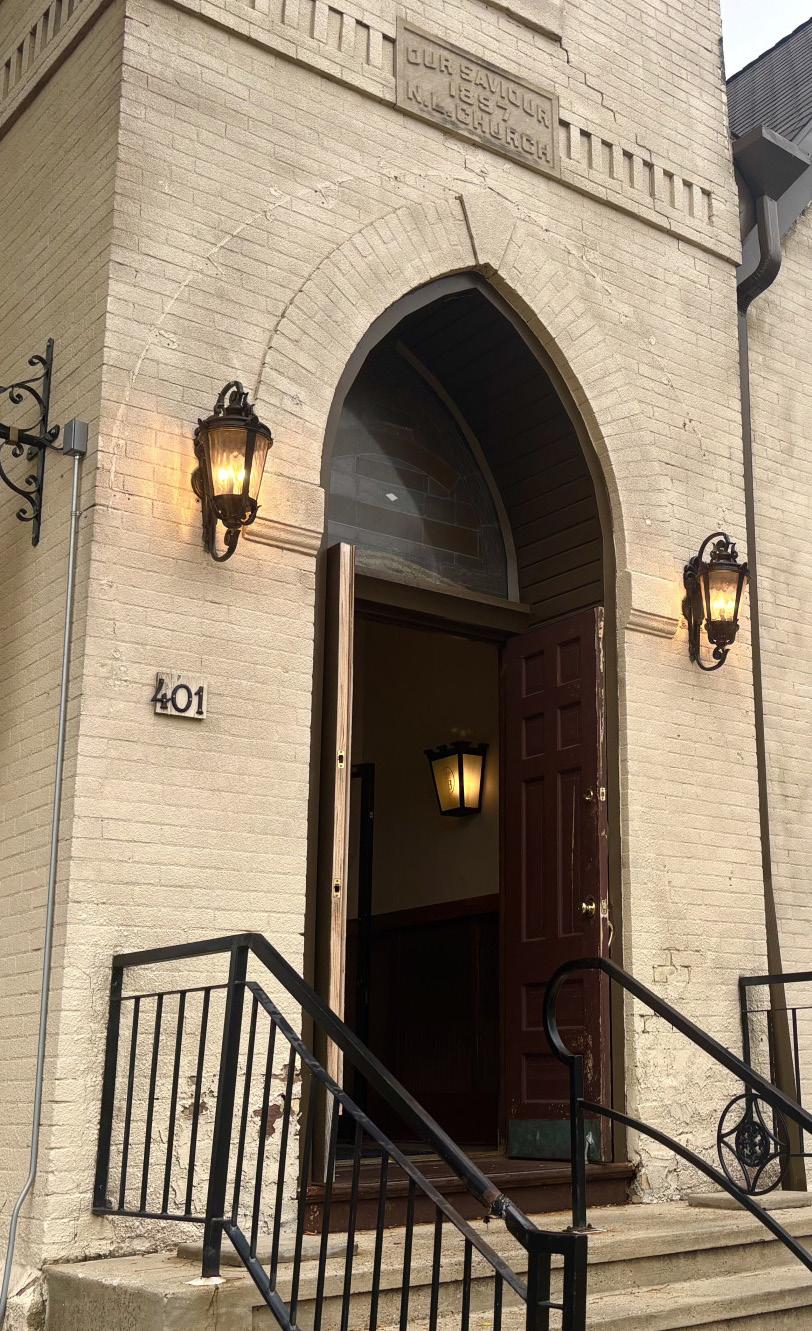 Entering the grand doorway was like stepping into a time machine. The beer hall opened its doors in 2022, but is located in a historic 19th century church with a stunning interior. On the ceiling is a bright fresco that surrounds a central chandelier, and lining the walls are intricate gothic style lanterns that help build a warm and inviting ambience. Colorful stained glass windows also set the mood for an afternoon of gulping down a few godlike beers.