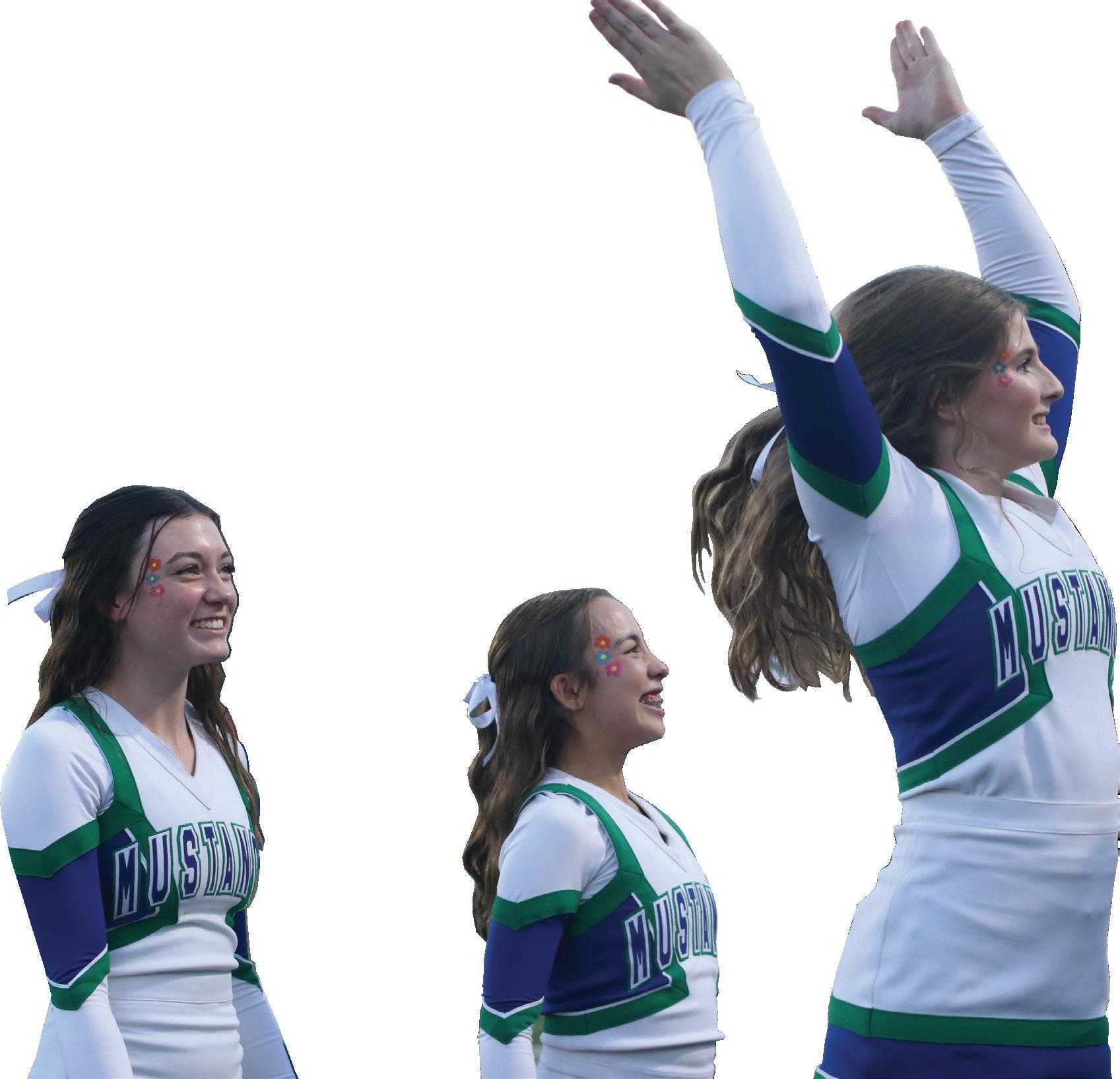 n the sidelines of every football and basketball game are our perpetrators of pep - the cheerleaders. With a focus on the crowd’s enjoyment and entertainment, their chants and routines are practiced for weeks before every season.