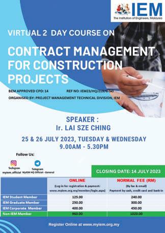 THE INSTITUTION OF ENGINEERS, MALAYSIA Bangunan Ingenieur, Lots 60 & 62, Jalan 52/4, P.O. Box 223, (Jalan Sultan), 46720 Petaling Jaya, Selangor Darul Ehsan. Tel: 603-7968 4001/4002 Fax: 603-7957 7678 E-mail: sec@iem.org.my Homepage: http://www.myiem.org.my