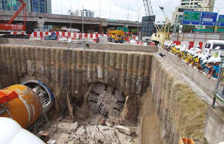 For the KVMRT project, there will be 9.5km of twin tunnels and 7 underground stations in the KL city centre. The need to overcome problems in tunnelling through the KL karstic limestone formation also resulted in the world’s irst Variable Density TBM, jointly developed by a German TBM manufacturer and Malaysian engineers.