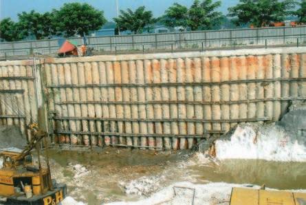 2. Soil-cement mix to form an embedded wall for a relatively low height excavation in very soft marine clay.