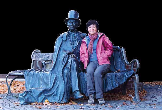 Andersen’sfairytaleshavebeentranslatedintomorethan 155 languages, and his statues and those of the characters that he had created can be seen throughout Denmark and in many parts of the world. The bronze sculpture of The Little Mermaid sitting on a granite boulder at the Copenhagen waterfront for just over a century, is a national icon of Denmark and Andersen’s works are now a common