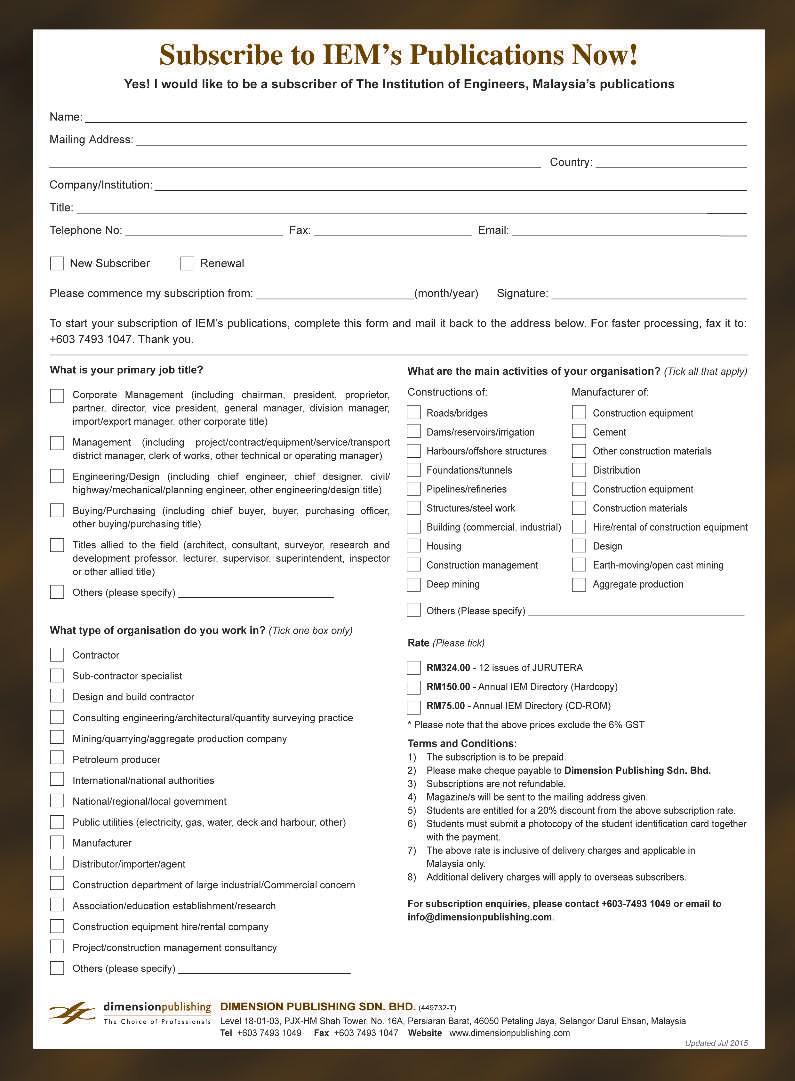 E-mail: pub@iem.org.my or sec@iem.org.my IEM Website: htp://www.myiem.org.my © 2015, The Insituion of Engineers, Malaysia (IEM) and Dimension Publishing Sdn. Bhd.