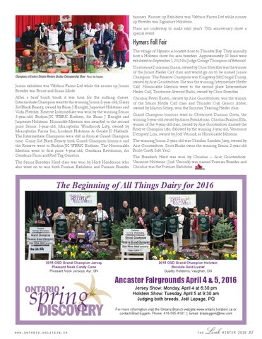 Ancaster Fairgrounds April 4 & 5, 2016 Jersey Show: Monday, April 4 at 6:30 pm Holstein Show: Tuesday, April 5 at 9:30 am Judging both breeds, Joël Lepage, PQ