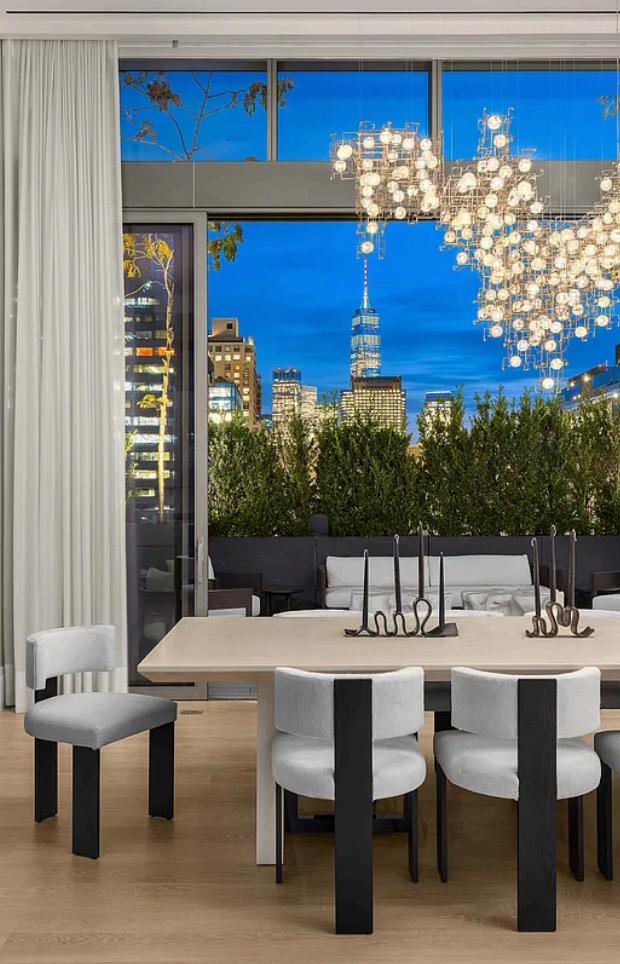 This magnificent 4,682square-foot residence at 565 Broome SoHo presents a flawless combination of elegance and contemporary luxury. Featuring 10-foot ceilings and beautiful 6-inch wideplank white oak flooring, this bright four-bedroom home includes five bathrooms and one powder room. It offers stunning panoramic views of Midtown and the historic charm of SoHo, f i b th th d