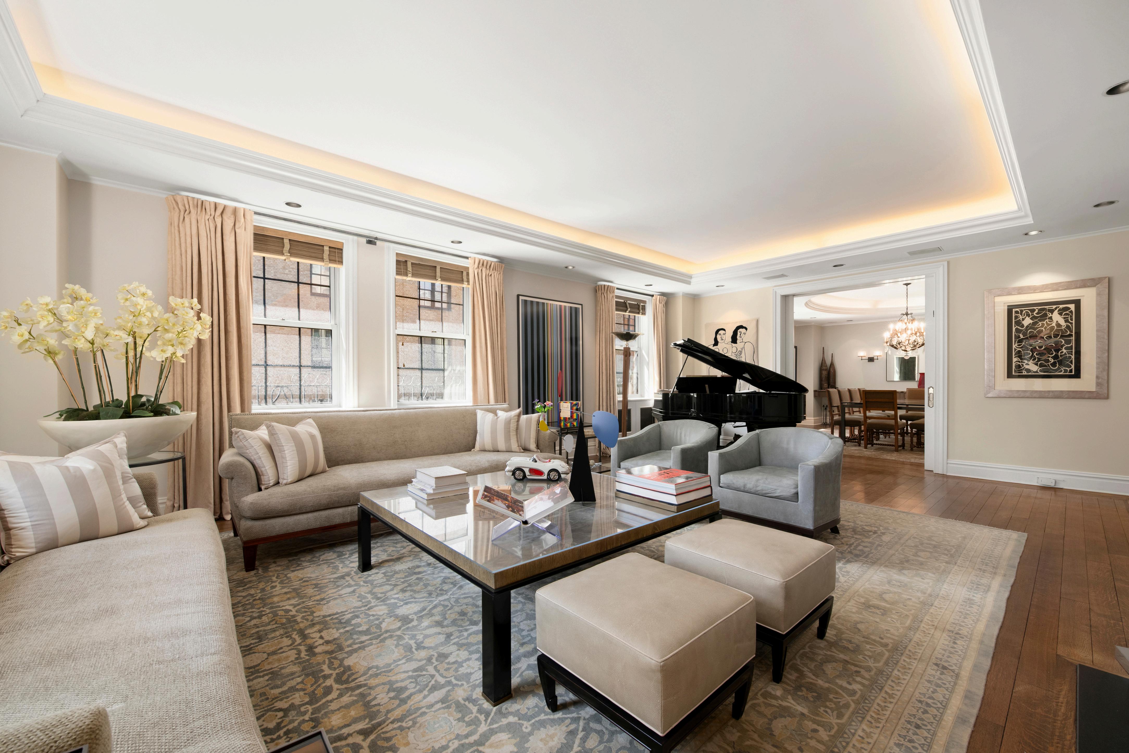 Nestled at 860 Park Avenue, this spacious prewar co-op on the Upper East Side harmoniously marries contemporary elegance with traditional charm. Encompassing 4,400 square feet, this resplendent abode features 12 rooms, including 5 bedrooms and 5.5 bathrooms. A private elevator foyer ushers you into a marble gallery, leading to a luminous 28-foot living room adorned with dual exposures and a cozy woodburning fireplace, while the formal dining room beckons for grand gatherings. The chef's kitchen, a culinary haven, boasts high-end appliances and a delightful breakfast room.