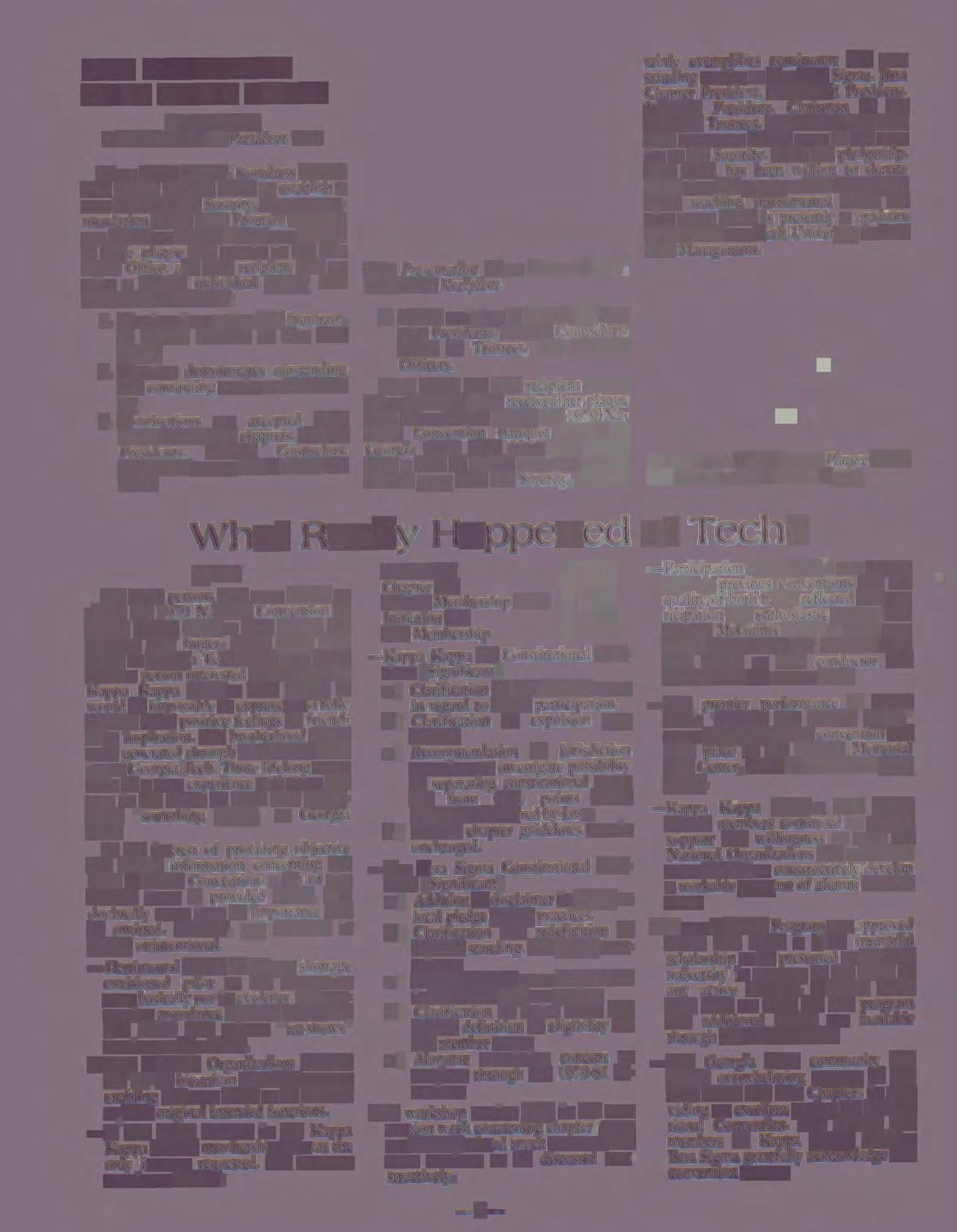 For those persons who were unable to attend the 1979 National Convention of Kappa Kappa Psi/ Tau Beta Sigma, the question may linger, What really happened at Georgia Tech which may effect me as a person interested in the future of Kappa Kappa Psi/Tau Beta Sigma. It would be impossible to express or to fully evaluate those positive feelings of friendship, inspiration, and brotherhood which were generated through the week of sharing at Georgia Tech. Those lifelong memories of a new experience will shine forever in the hearts of those who experienced "something special" at Georgia Tech.