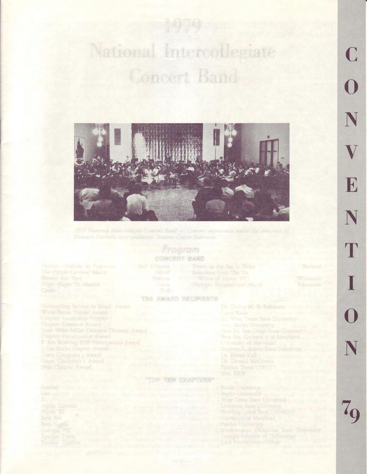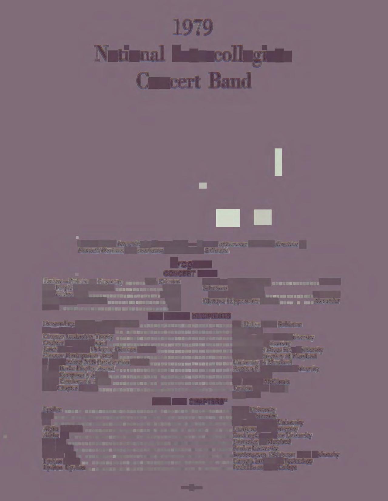 1979 National lntercollegite Concert Band- Concert appearance under the direction of Kenneth Durham, host conductor. Student Center Ballroom.
