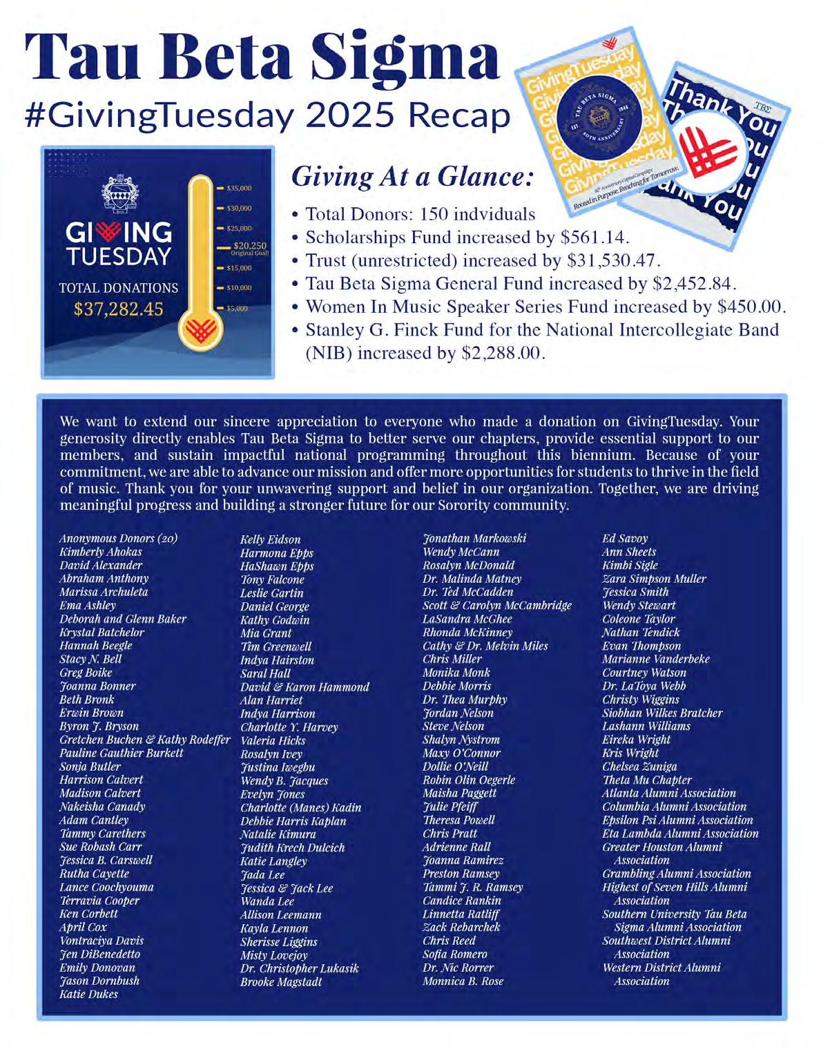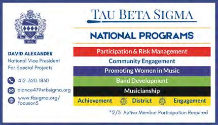 As we move into this Spring season, take time to rejuvenate within your band programs, chapters, and leadership circles. Focus on building meaningful relationships in your communities—because people are the heart and soul of our organizations. Through intentional recruiting, retention, and relationship-building, we continue to strengthen the foundation of what we do together. Continue to Strive For the Highest and to serve For Greater Bands!